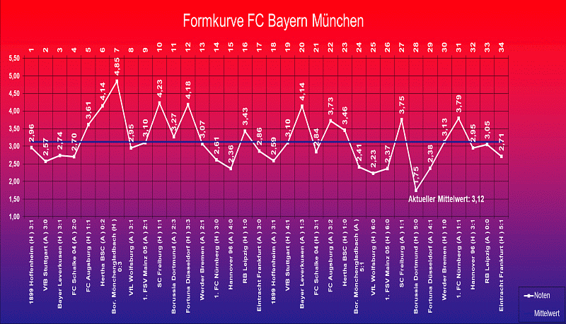- Am besten in Form war der FCB (Notendurchschnitt 3,09), am schlechtesten der VFB (Notendurchschnitt 4,03)
